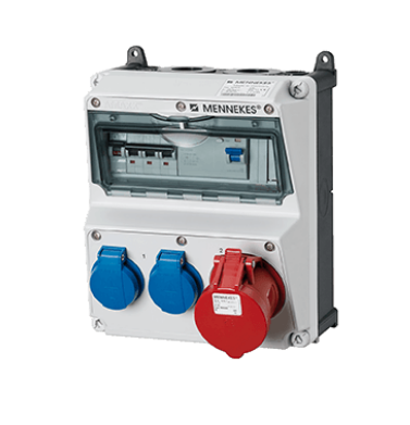 AMAPLAST-enclosure 260 x 225 mm, 1 CEE receptacle 32A 4p 6h 400V (IP44) 1 Diferencial 40A, 4p, 0,03A, 1 MCBs 32A 3p C, 1 MCBs 16A 31P+Np C, 2 SCHUKO 16A 230V